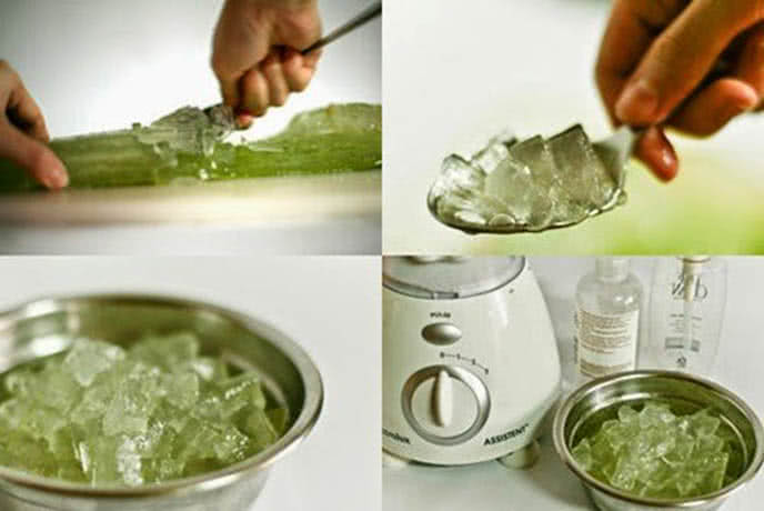 Bước 3: Cho gel lô hội vào máy xay hoặc cối giã. Đồng thời cho vitamin, dầu dừa để tạo kem dưỡng ẩm, dưỡng trắng đặc biệt cho da.